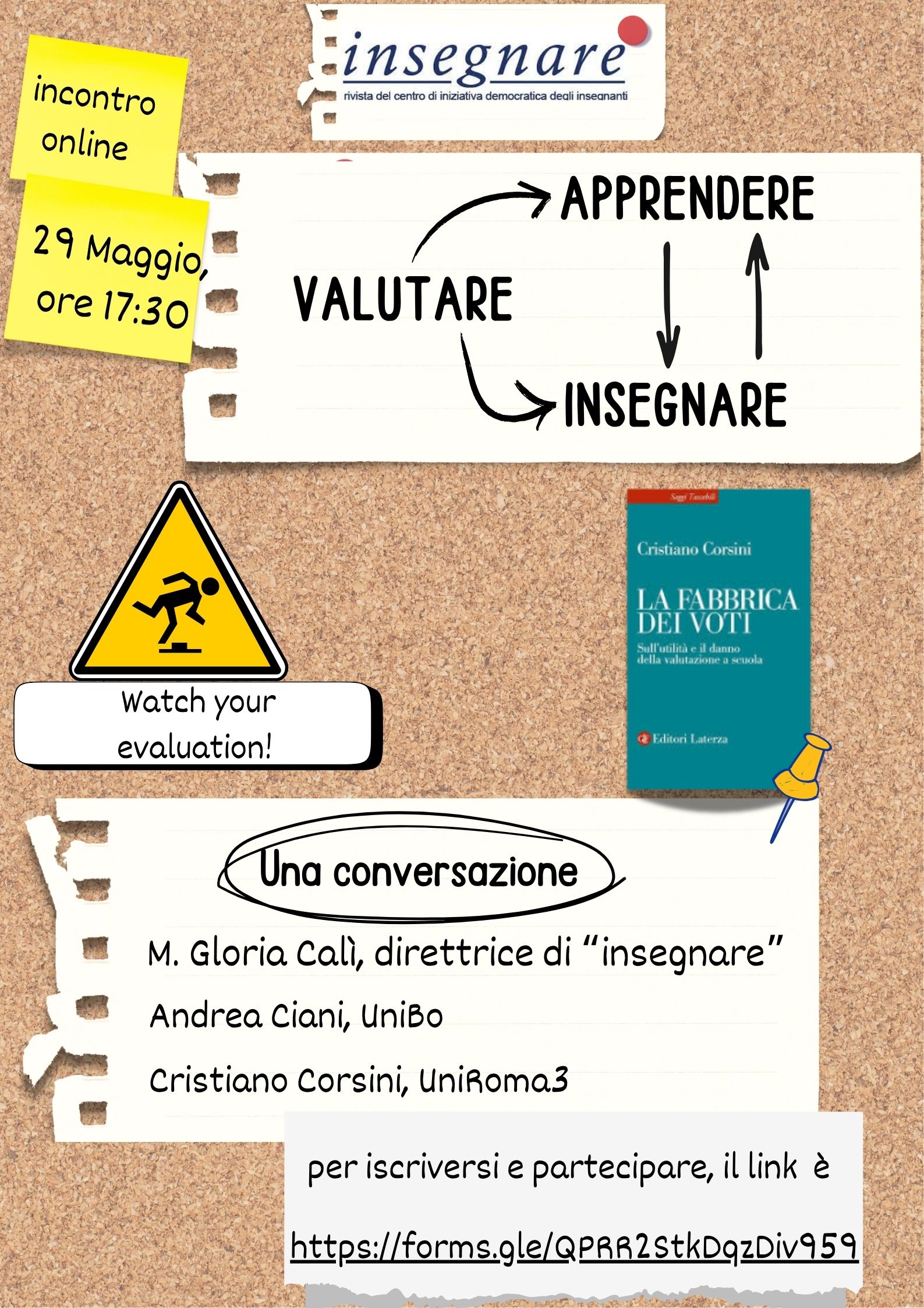 La valutazione è uno dei terreni su cui si fa l'apprendimento, la relazione, il senso stesso dello stare a scuola ; è anche uno dei terreni meno coltivati dall* insegnanti, che, più o meno consapevolmente, trasformano le scuole in "fabbriche di voti", per parafrasare il titolo dell'ultimo libro di Cristiano Corsini (Università di RomaTre).